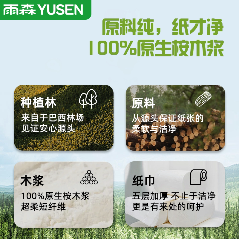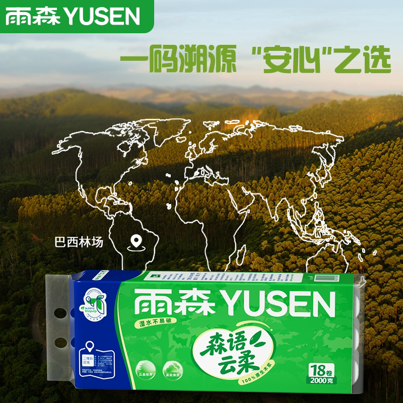 雨森桉木浆森语云柔卷纸加厚4斤18卷家用实惠装卷筒纸厕所卷纸巾