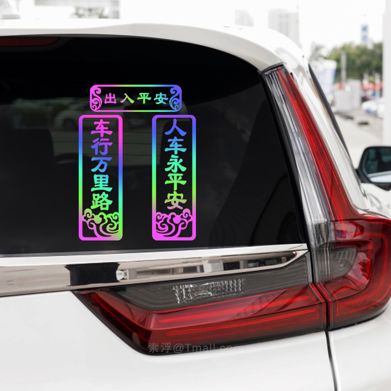 高级感汽车贴纸一路平安金属车贴3d立体文字夜光车外尾标装饰品