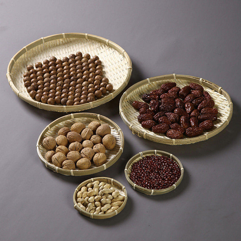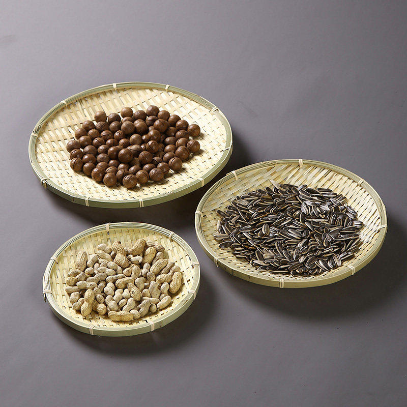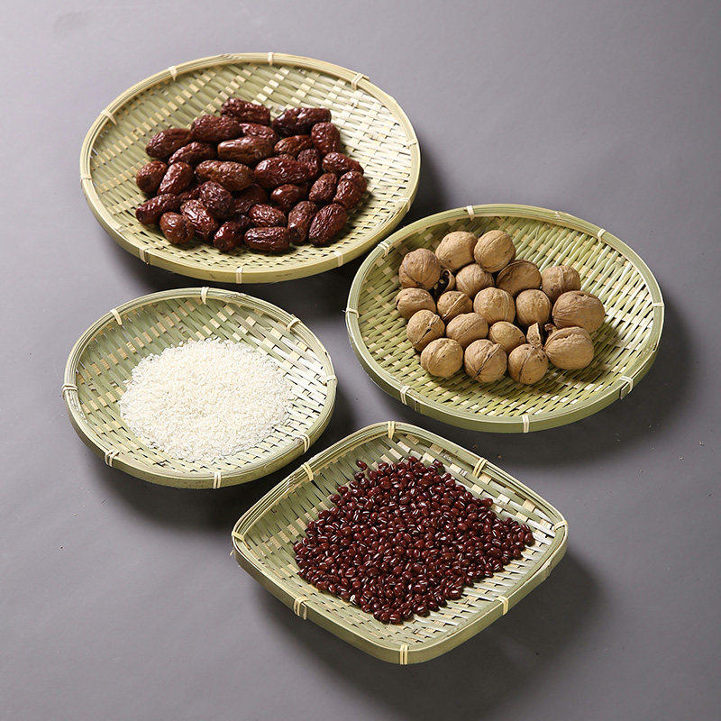 安吉手工竹编水果托盘农家晾晒圆盘传统竹制器具长方形编织果盘