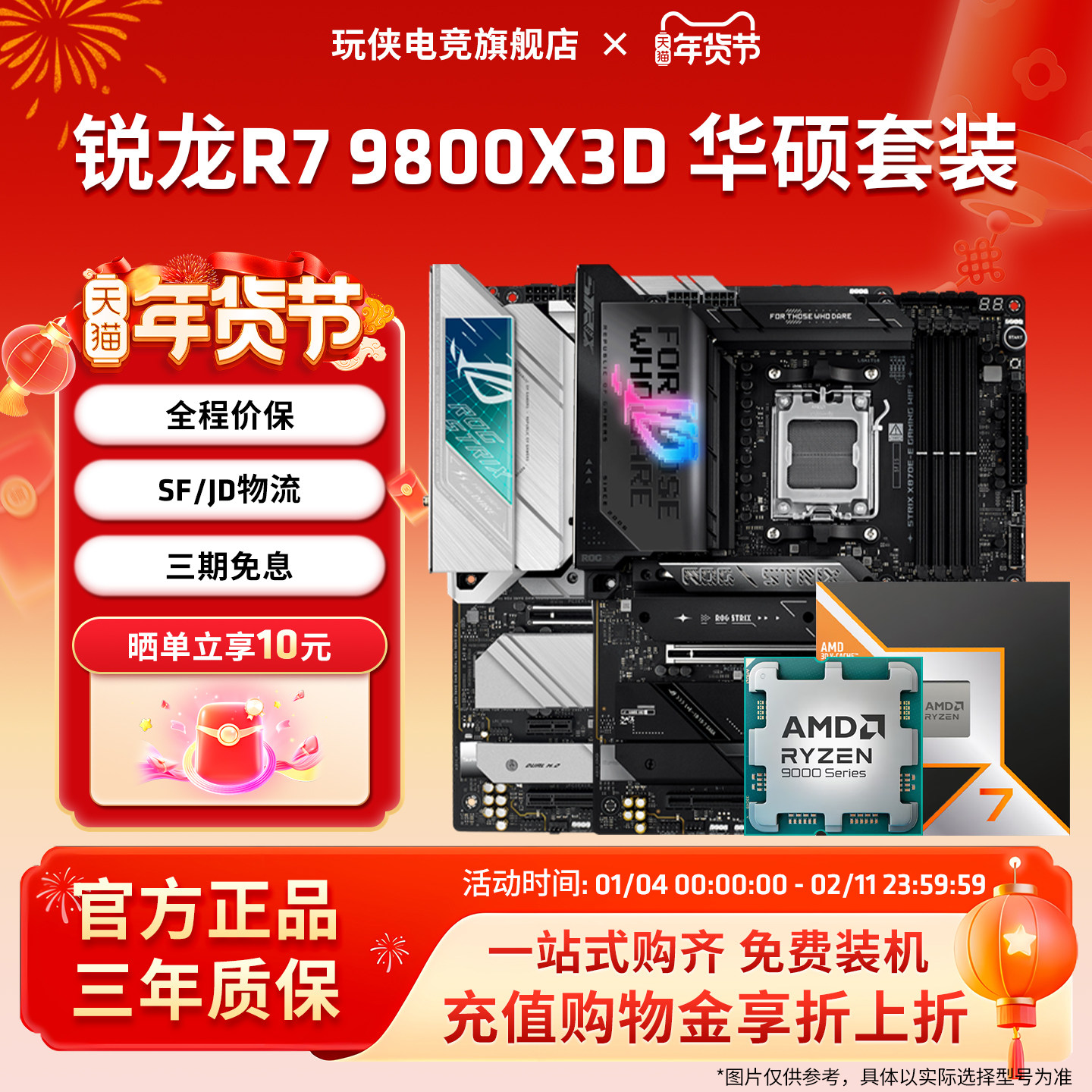 AMD锐龙 R7 9800X3D套装搭华硕B850X870吹雪重炮手主板CPU套装板U