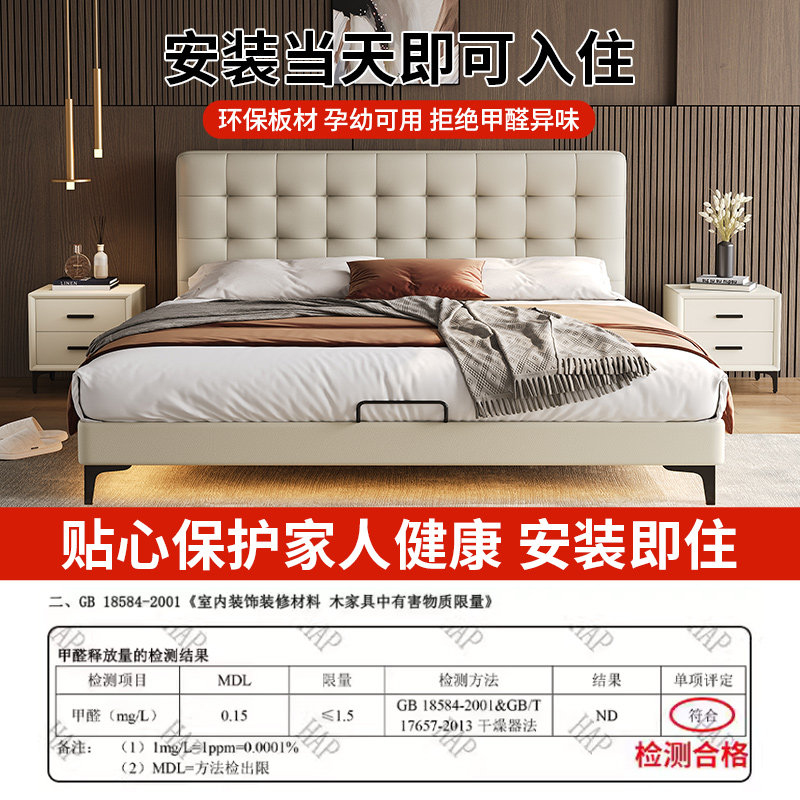 现代简约实木床1.8米主卧双人床1.5M单人经济型高箱储物大床