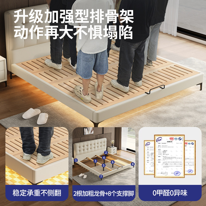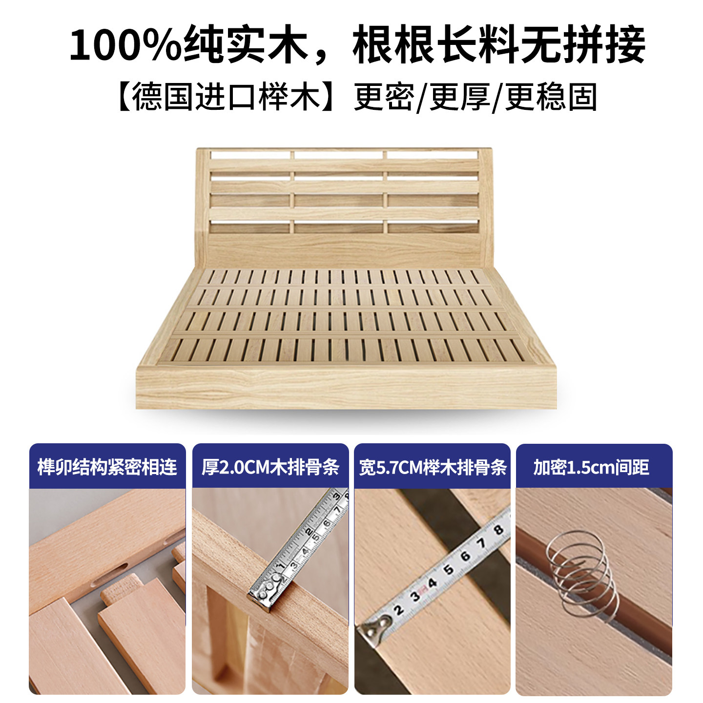 全实木无床头床架榫卯静音悬浮床小户型齐边排骨架床架可定制尺寸