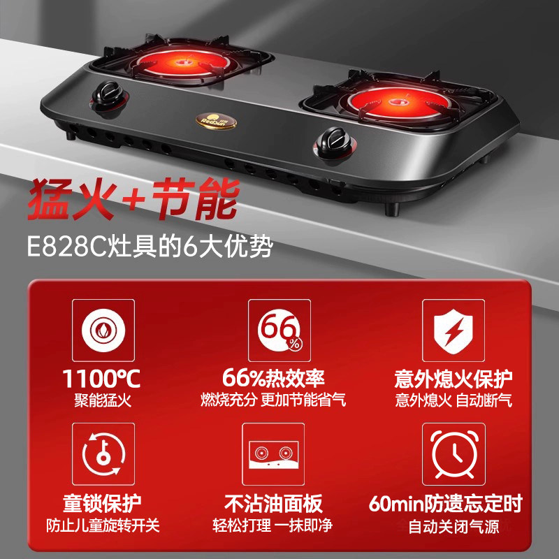 红日燃气灶双灶煤气灶家用台式红外线聚能炉灶液化气节能猛火灶台