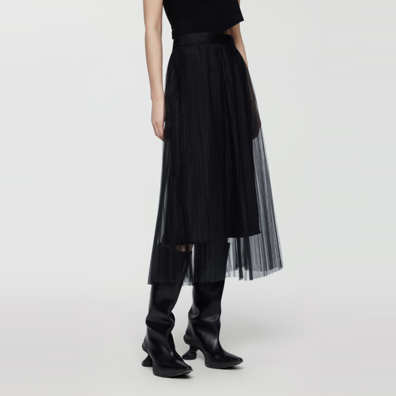 JNBY/江南布衣夏季女装半身裙直筒裙混纺长款腰裙百褶网纱A字长裙