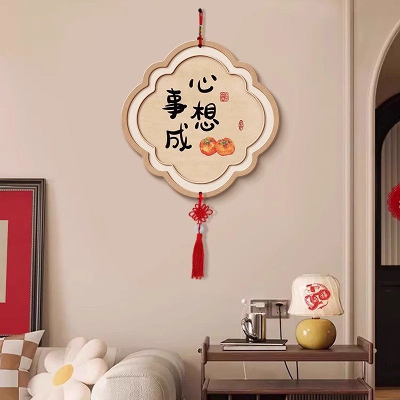 新中式餐厅装饰画饭厅墙面壁画客厅沙发背景墙挂画圆形柿柿如意画