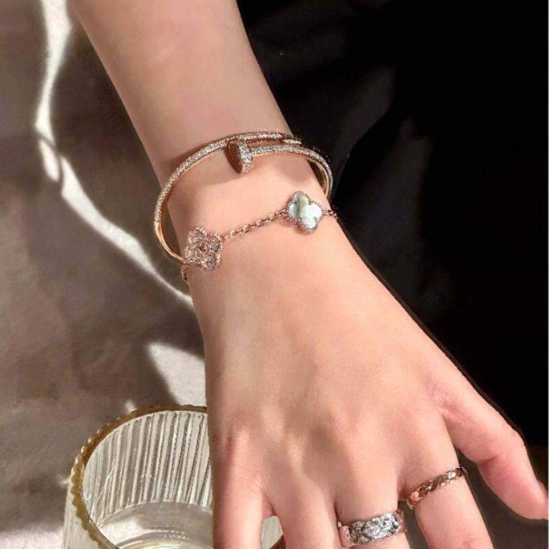 手镯女高级感轻奢小众窄版钛钢玫瑰金色钉子情侣手环白金黄金
