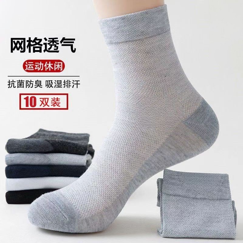 袜子男士%100纯棉中筒袜网眼防臭吸汗透气男生夏季薄款夏天抗菌袜