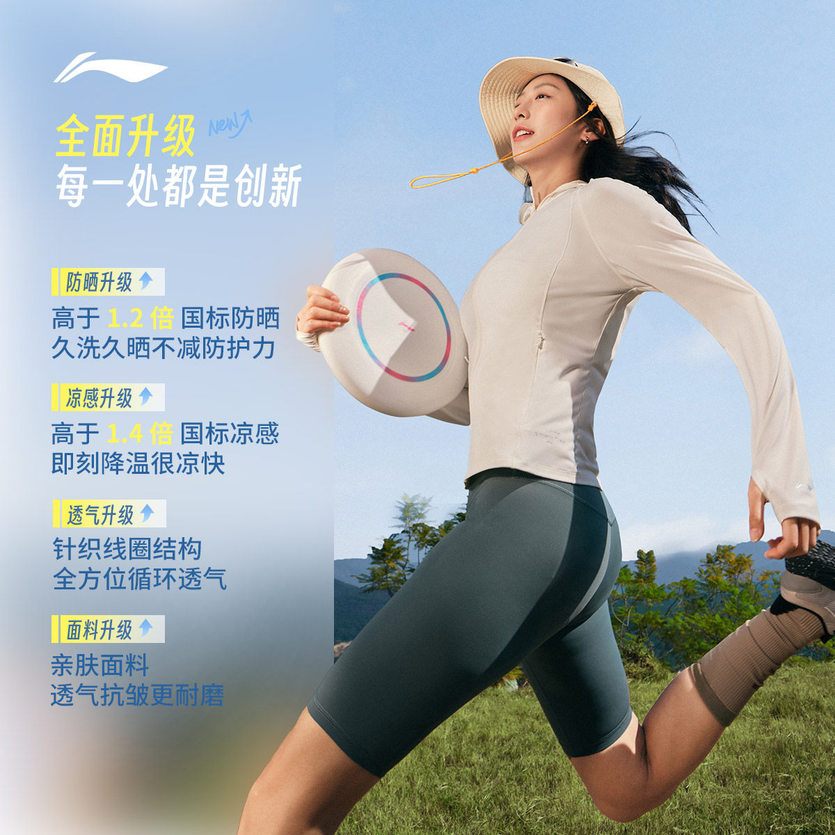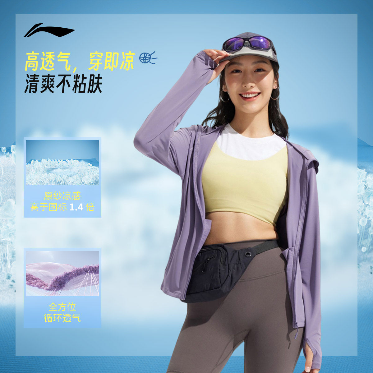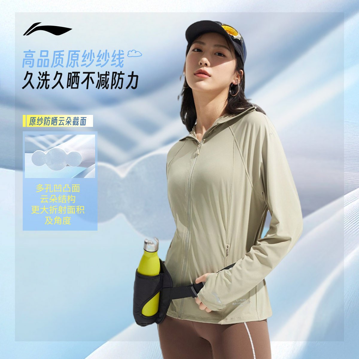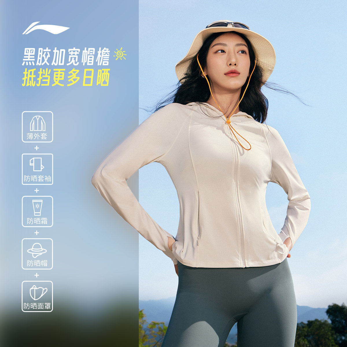 李宁冰沙防晒衣丨夏季修身收腰上衣女装原纱冰丝透气黑胶帽檐外套