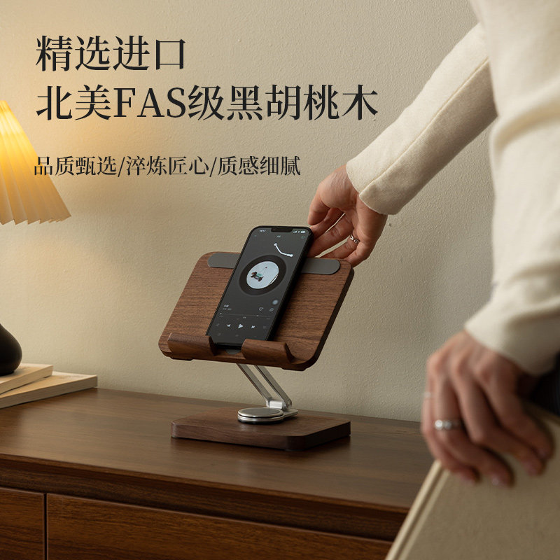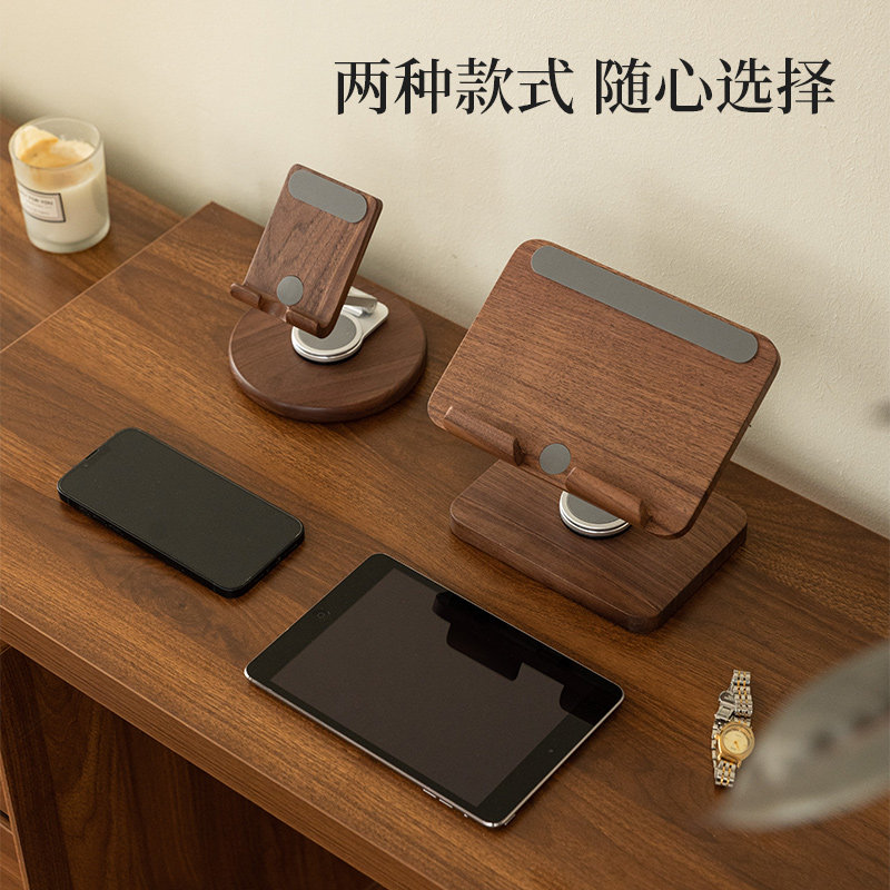实木手机支架床头懒人直播桌面复古高端支撑架可调节ipad平板架子