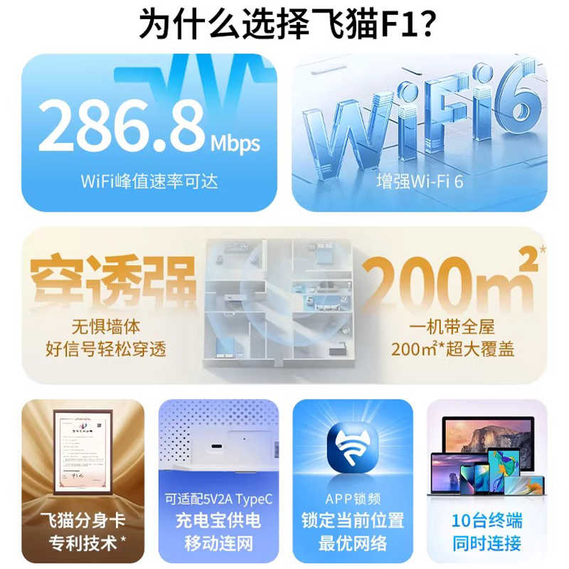 飞猫CPE路由器免插卡F1随身wifi无线4G插卡移动家庭路由器WiFi6户外充电宝无线网络便携高速移动wifi宽带家用