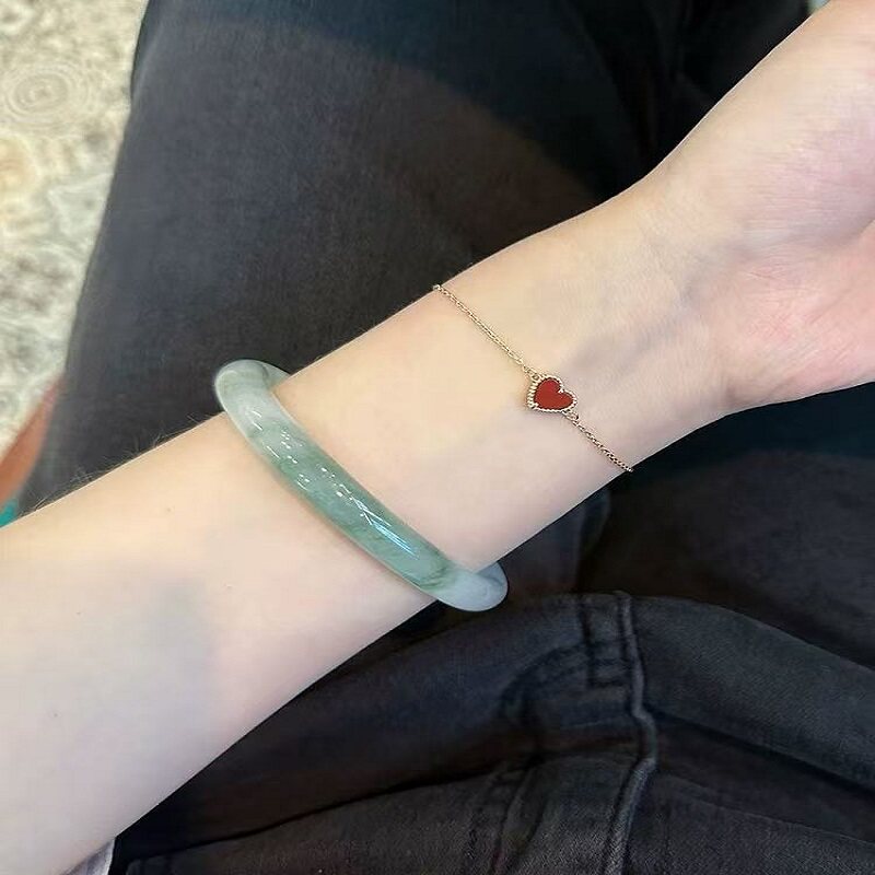 爆款仿天山翠玉手镯子少女款冰翠浅绿半山飘冰糯种高级感翠手镯