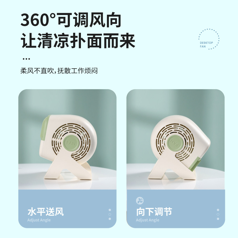 2025年新款能适涡轮风扇持久续航超强力大风工位学生宿舍上课静音便携风扇usb充电小电扇台式空调小型风扇夏