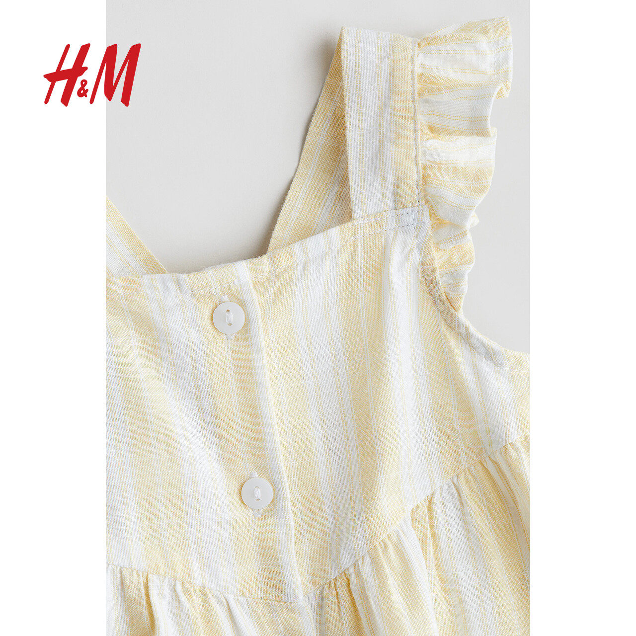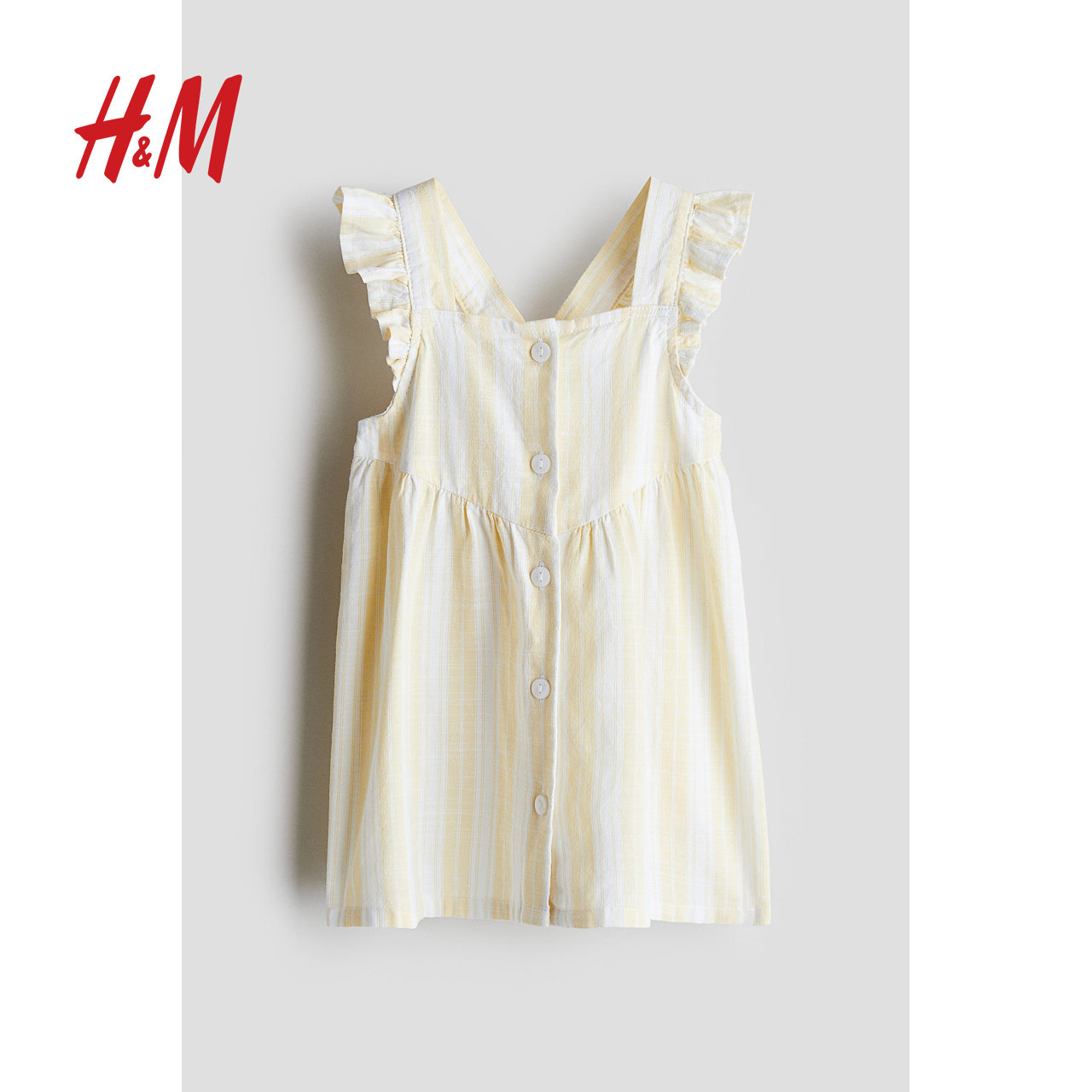 HM童装女婴裙子2025冬季新款洋气荷叶边印花棉质公主裙1123540