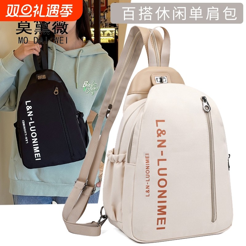 莫黛薇双肩包女时尚百搭斜跨包轻便运动休闲单肩胸包斜挎包大容量