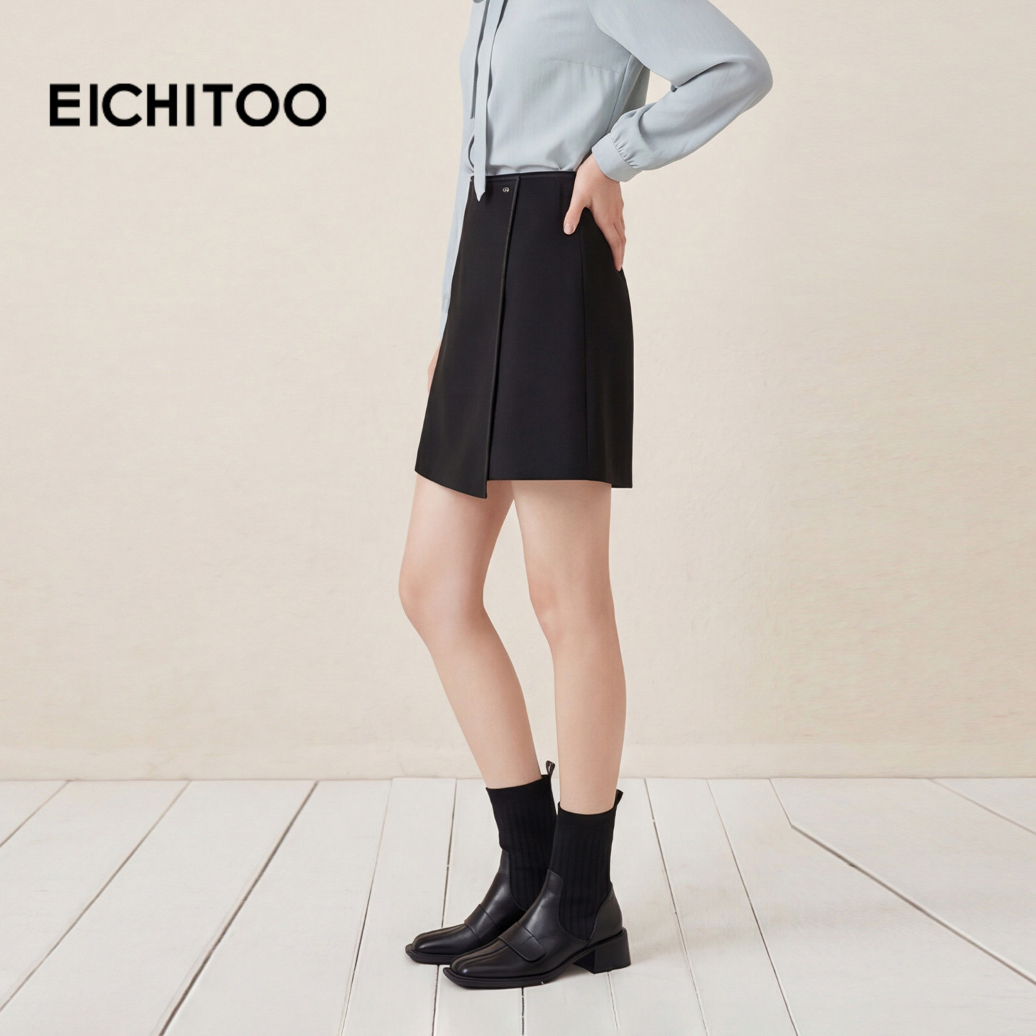 爱居兔春季新款职场通勤风斜门襟显腿长时尚半身裙裙子女