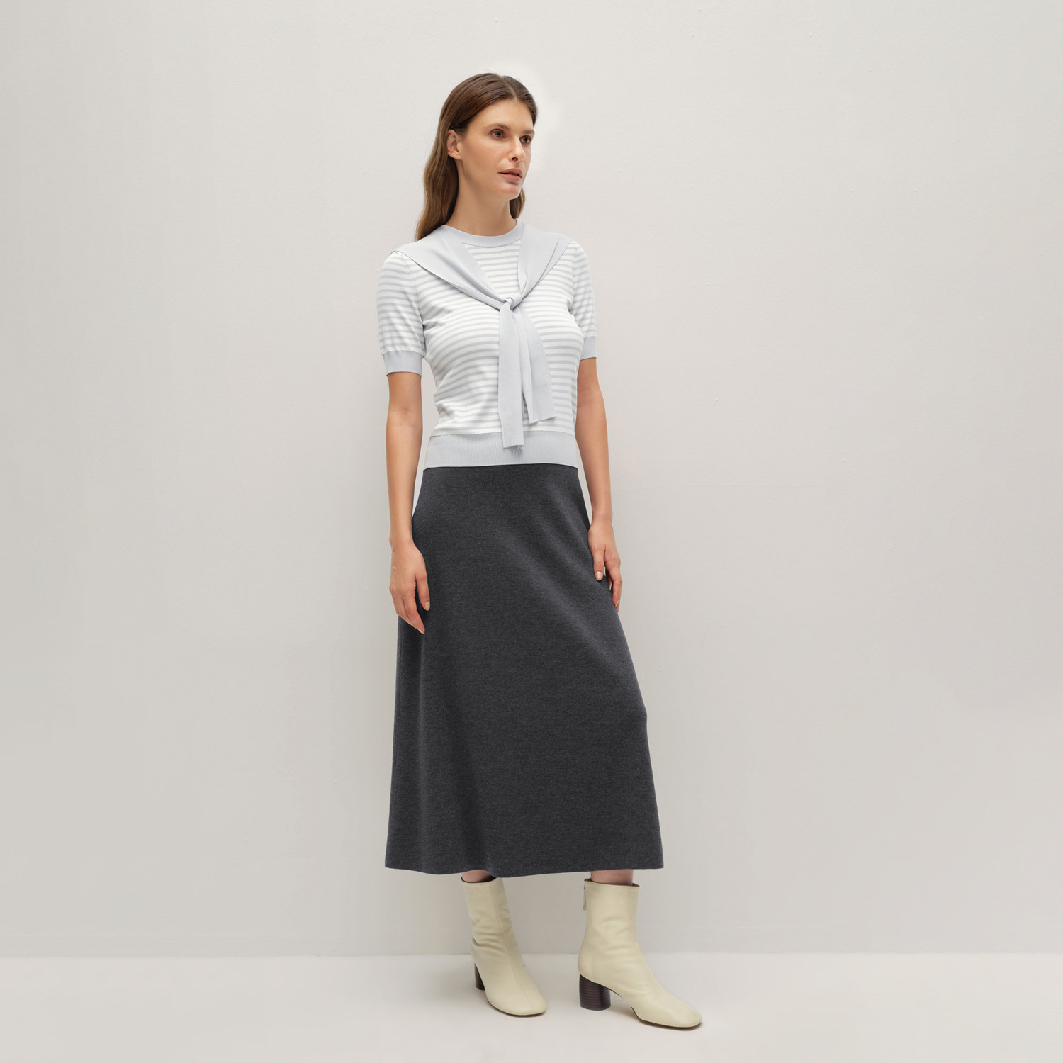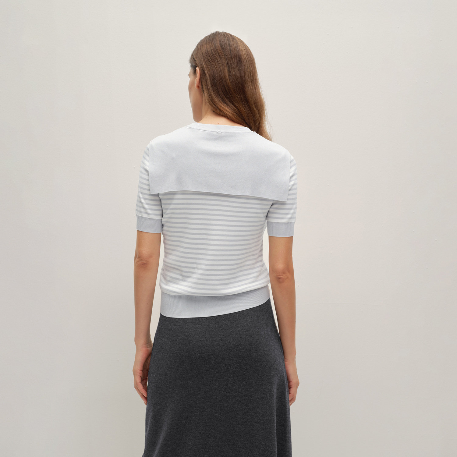 清爽条纹 可脱卸海军领 凉感针织