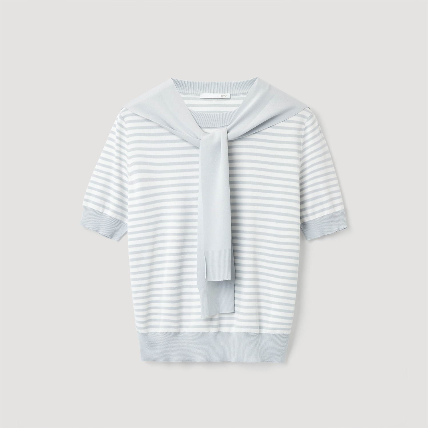 OVV2025秋冬新款女装条纹可脱卸海军领披肩凉感短袖针织衫