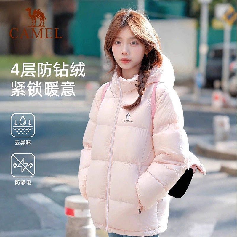 【雪泡芙】骆驼企鹅羽绒服女款2025冬新款保暖防风短款面包服外套