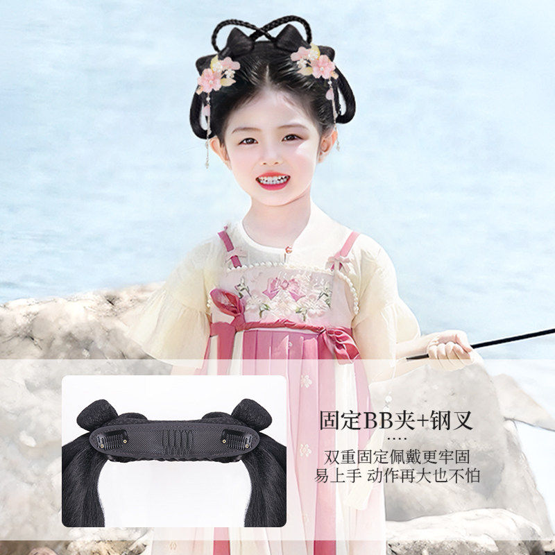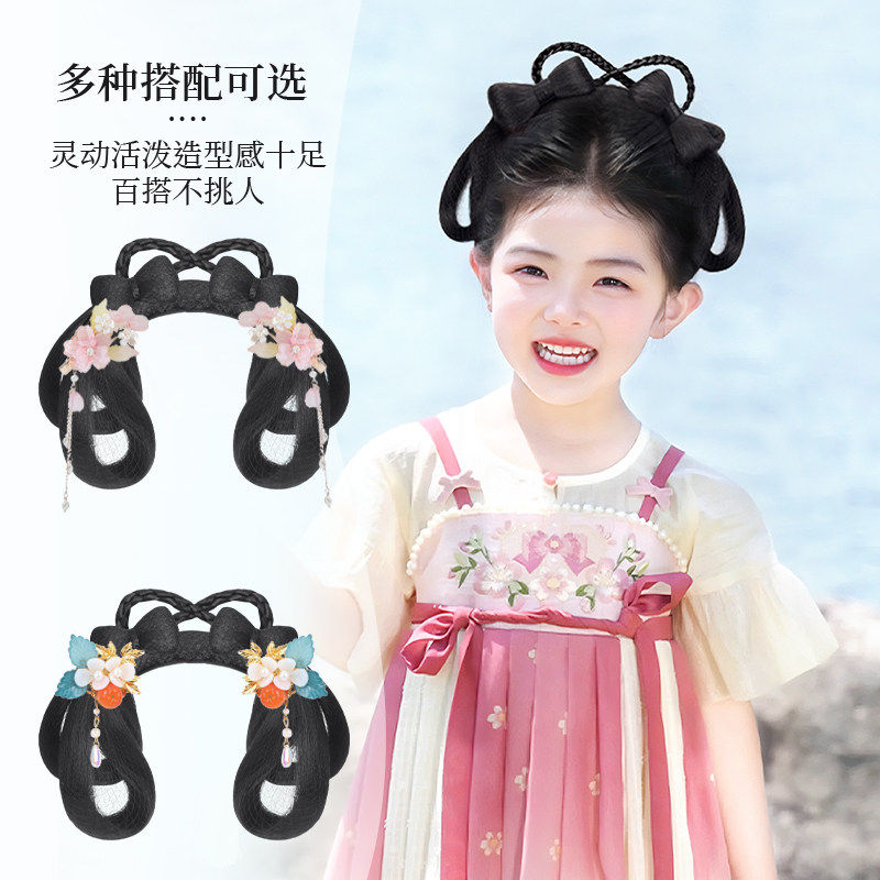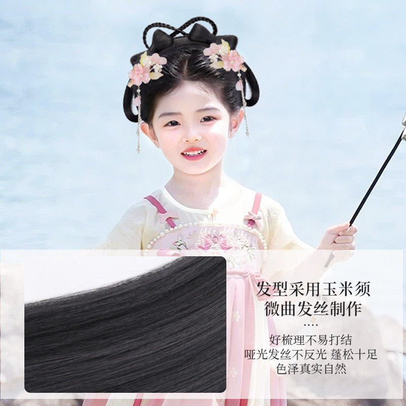 儿童汉服假发蝴蝶结发髻造型古装假发包女童汉服假发头饰假发古风