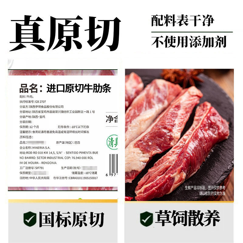 清真原切去骨牛肋条精选进口黄牛肋排块新鲜配料表干净红烧炖顺丰