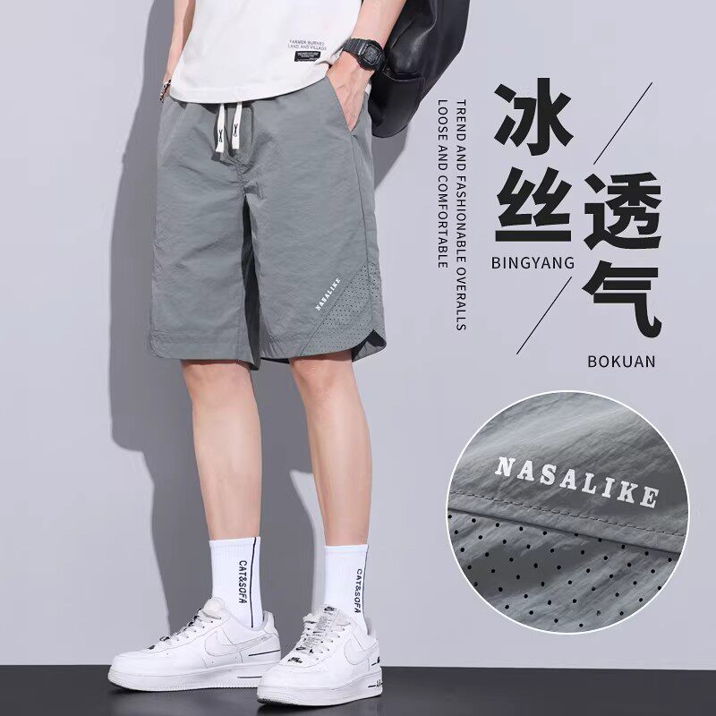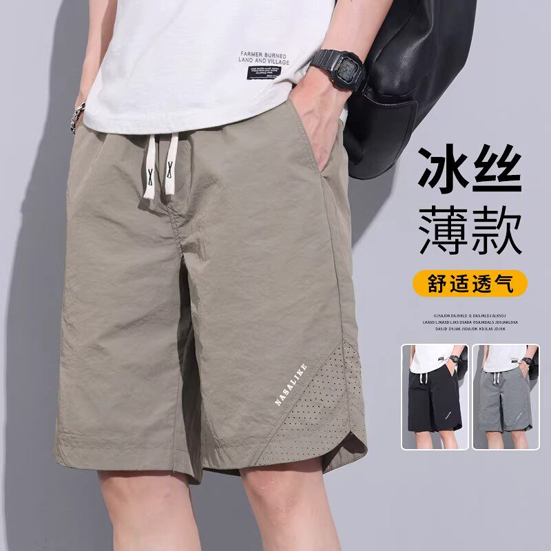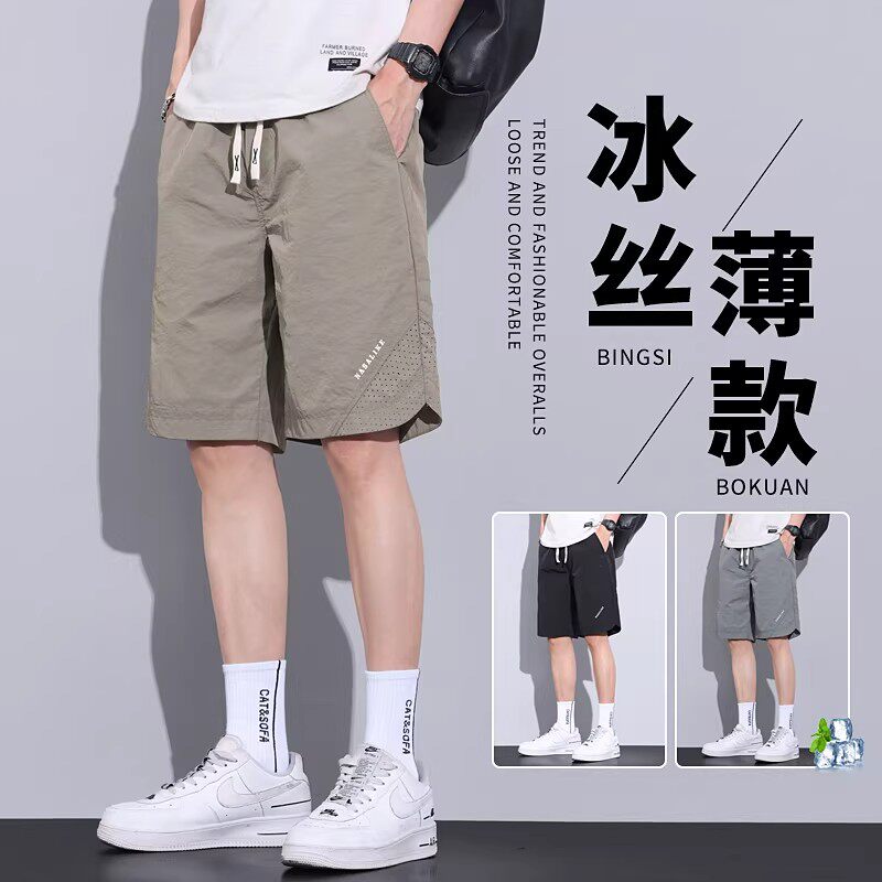 冰丝休闲短裤男士夏季薄款宽松马裤透气中裤速干运动夏天五分裤子