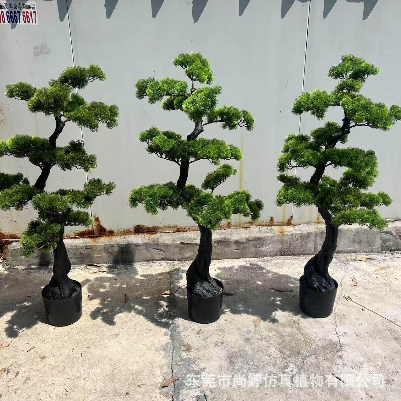 仿真美人松新中式仿真植物迎客松罗汉松室内装饰假树绿植盆栽摆件