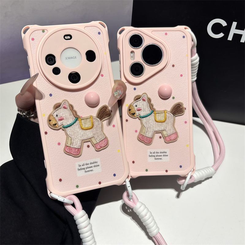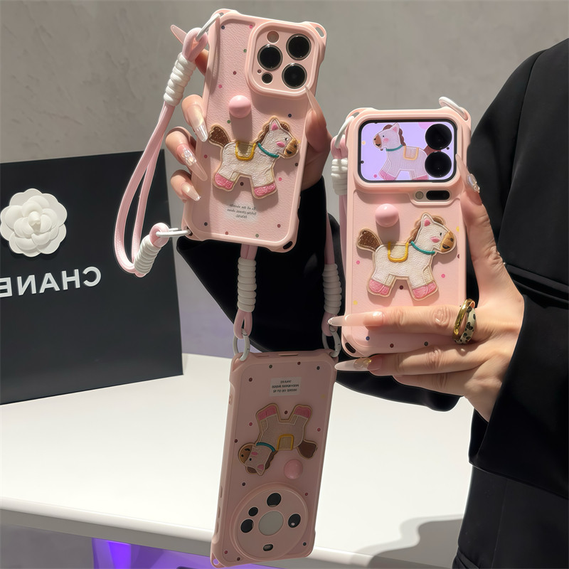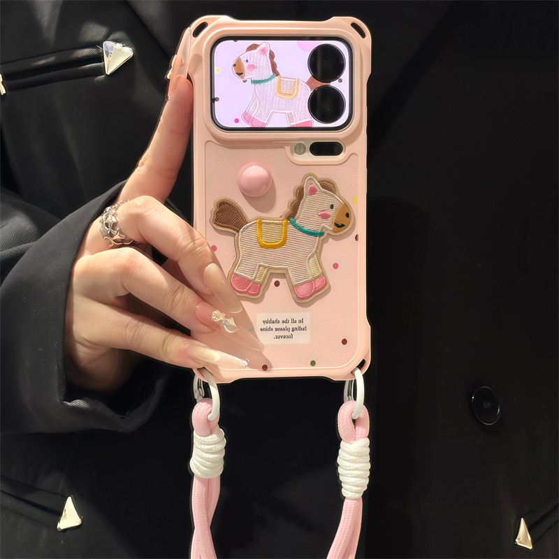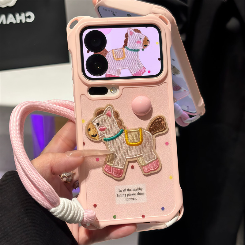 波点刺绣小马带挂绳适用苹果17手机壳iphone15/16promax网红超火华为Mate80荣耀500vivo小米17K90Pro套OPPO