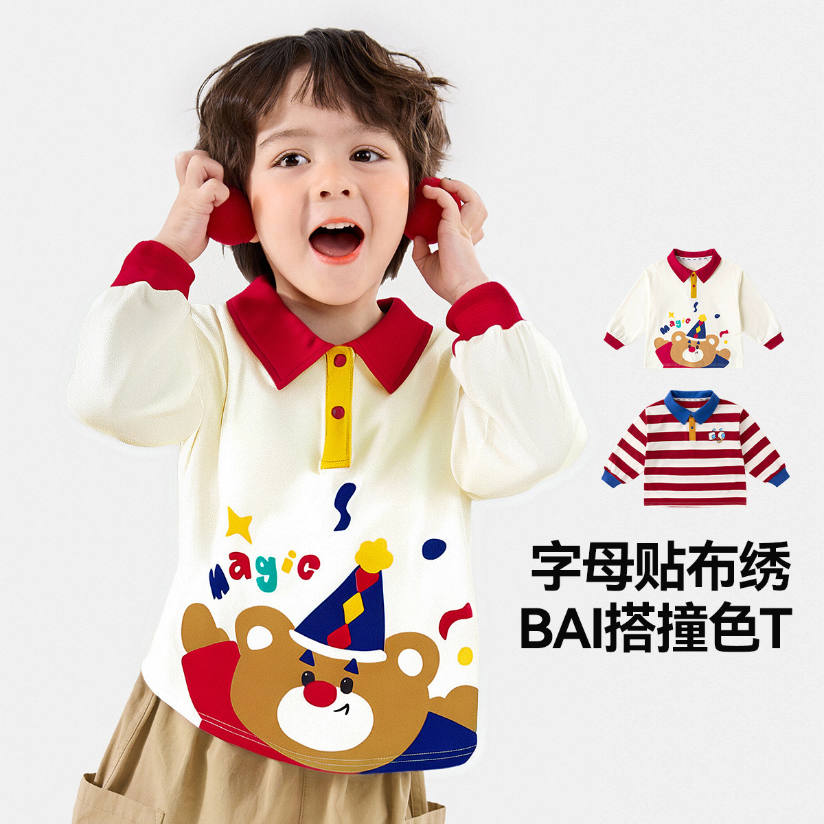 嘟嘟家男童T恤儿童春季上衣宝宝长袖打底衫春秋女童春装polo童装