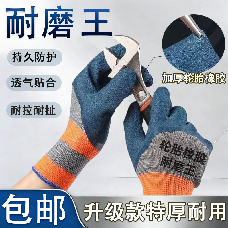 手套劳保手套乳胶橡胶手套工作劳保防滑防水耐磨胶皮手套工地干活
