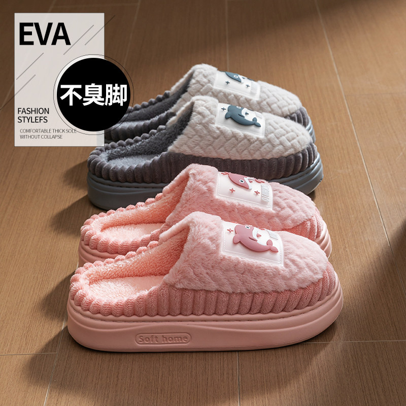 红豆踩屎感棉拖鞋女士秋冬季室内家居2025新款毛绒保暖情侣棉拖男