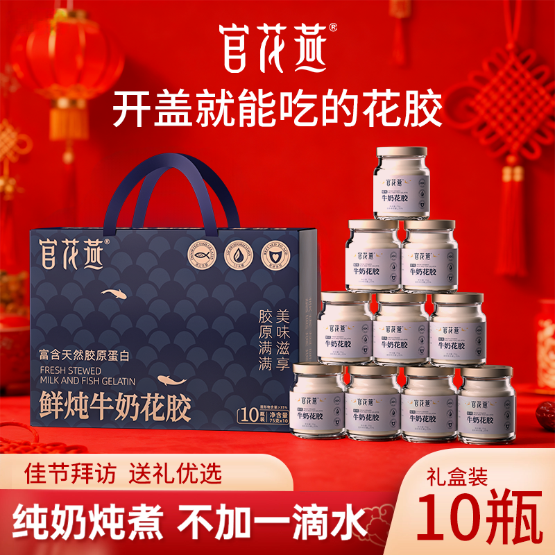 官花燕鲜炖牛奶花胶轻食年货节礼品即食花胶纯奶鱼胶代餐营养品