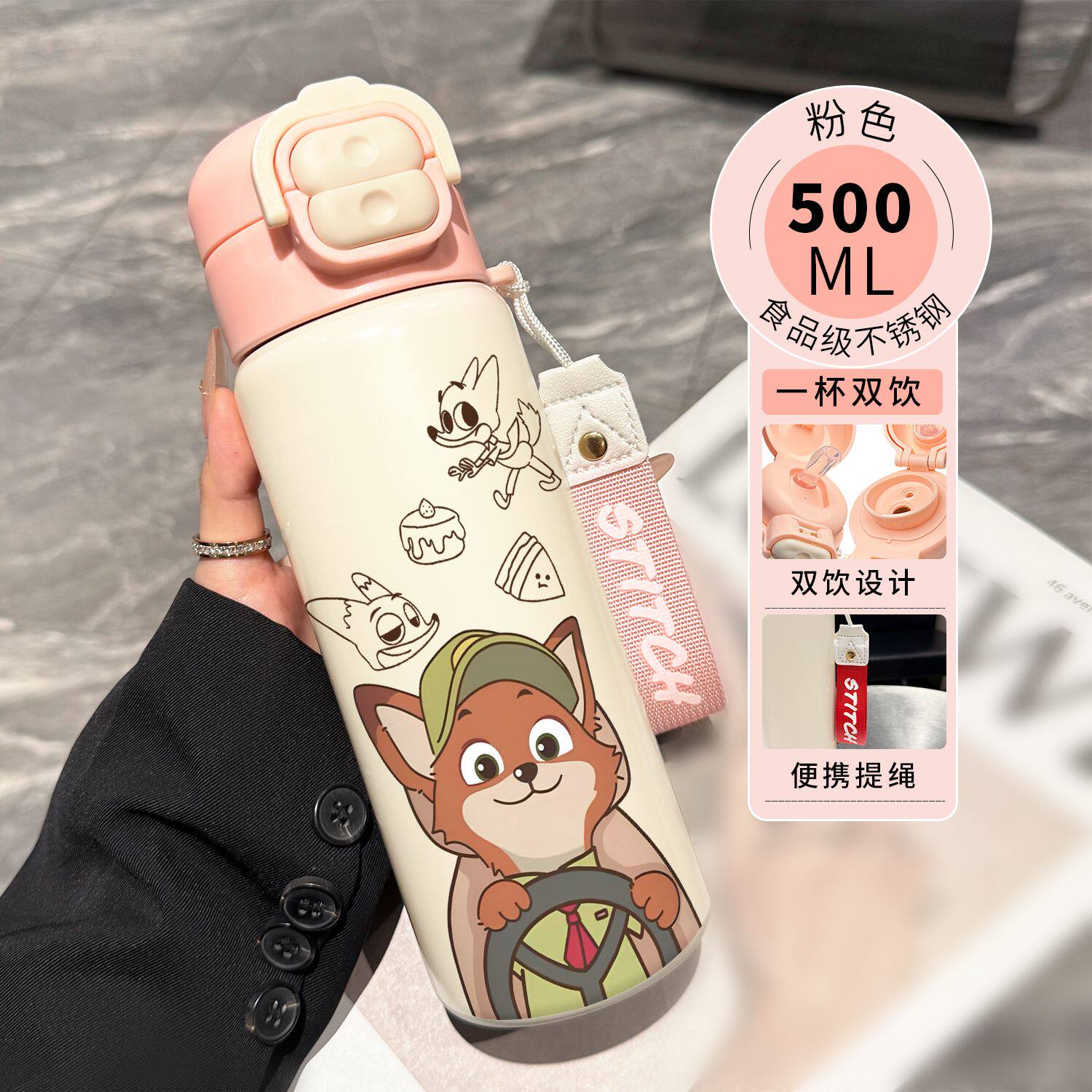 女士高颜值2025新款卡通保温杯兔子警官儿童女学生便携双饮水杯