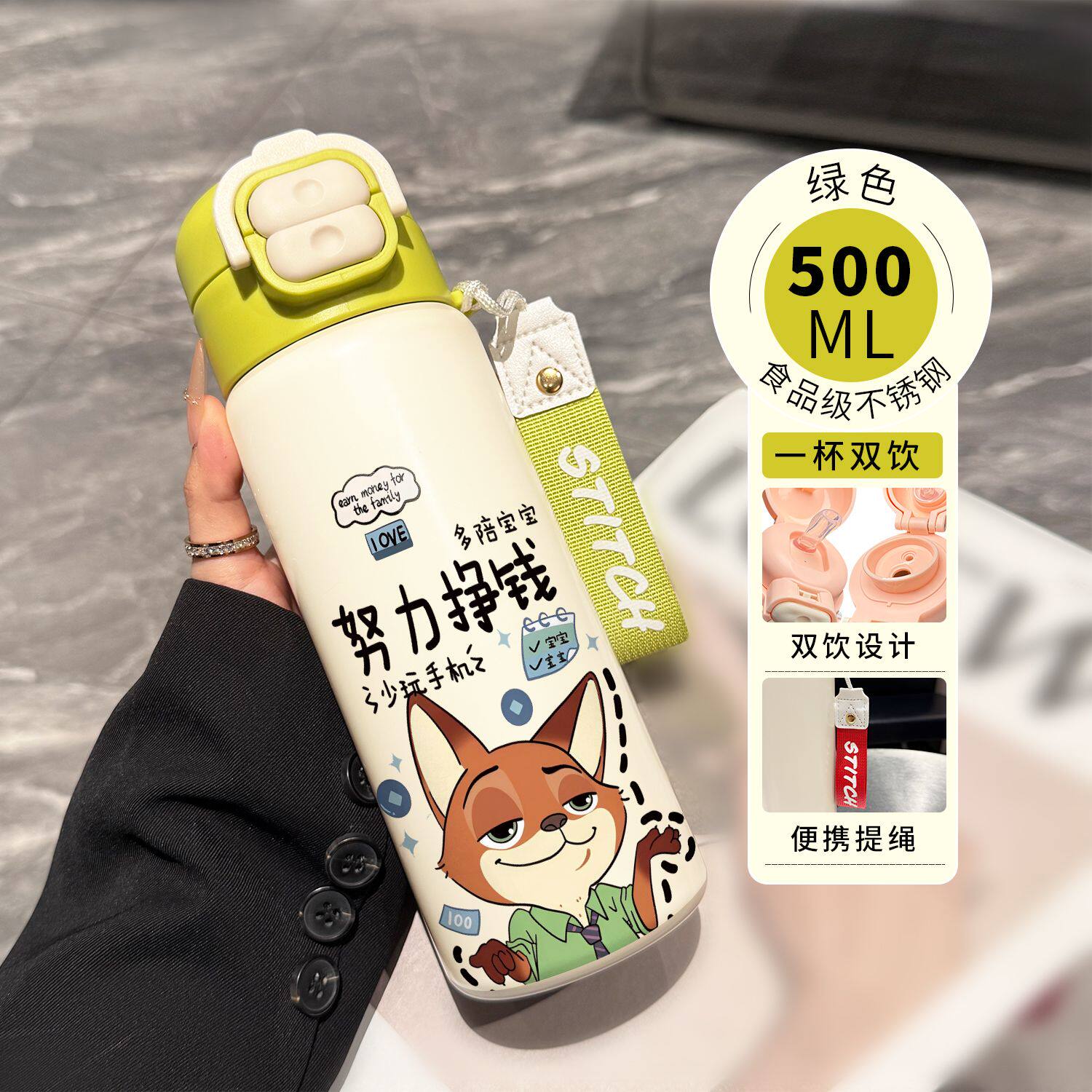 保温杯316不锈钢双饮咖啡杯大容量女高颜值随行吸管水杯情侣杯子