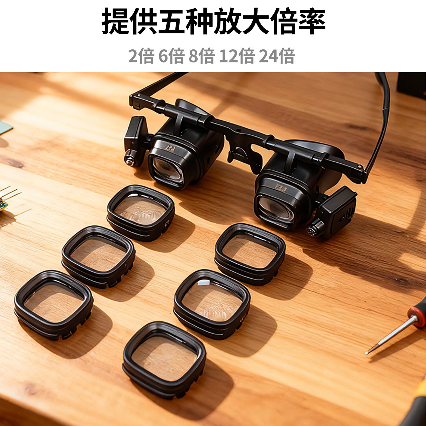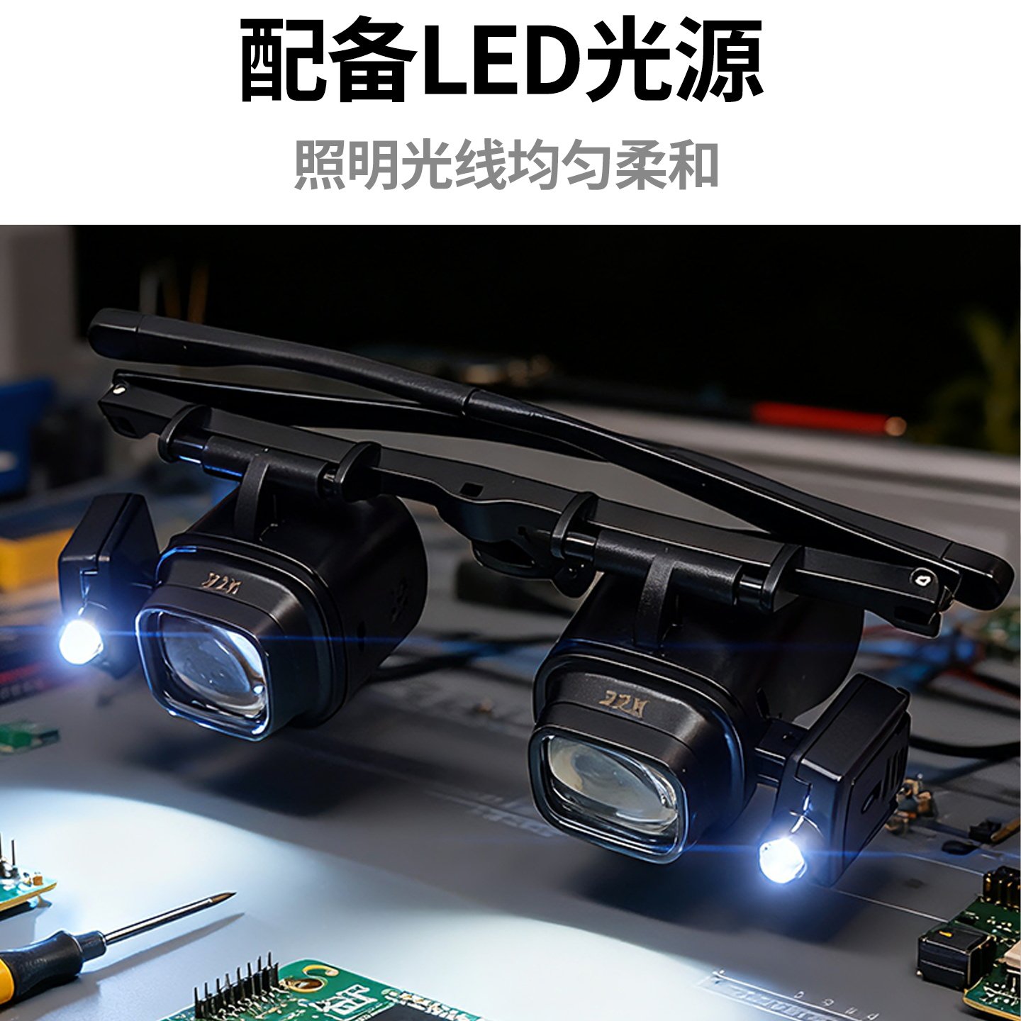 头戴式放大镜24倍高清手机电路板维修专用工具修表眼镜鸽子眼带灯