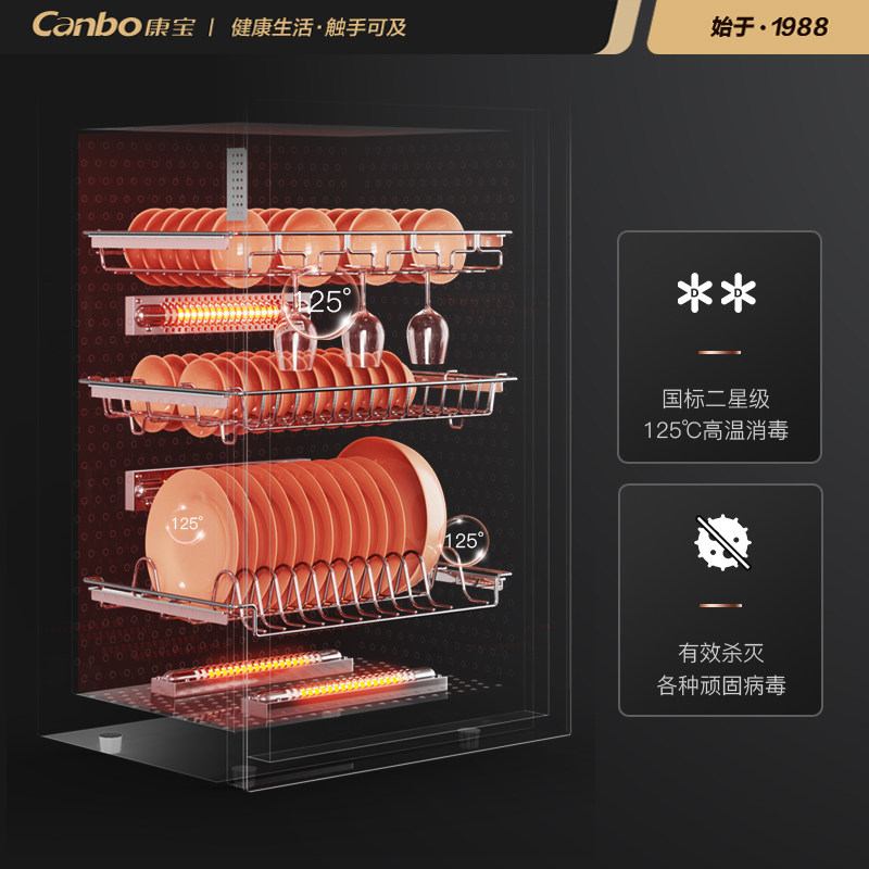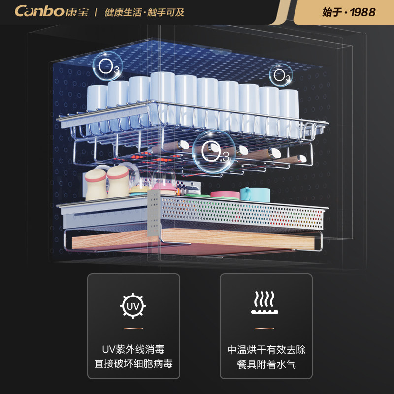 康宝新款家用智能不锈钢消毒柜厨房立式碗筷柜刀菜板收纳烘干一体