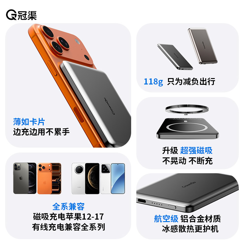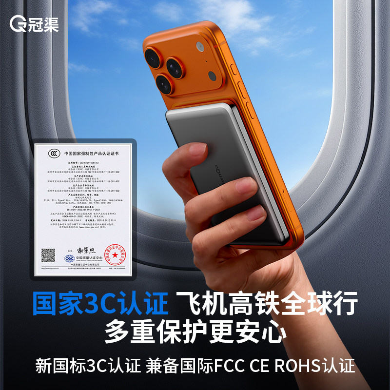超薄磁吸充电宝Magsafe2025新款适用苹果iPhone17无线3C认证可上飞机小巧便携卡片式专金属移动电源官方正品