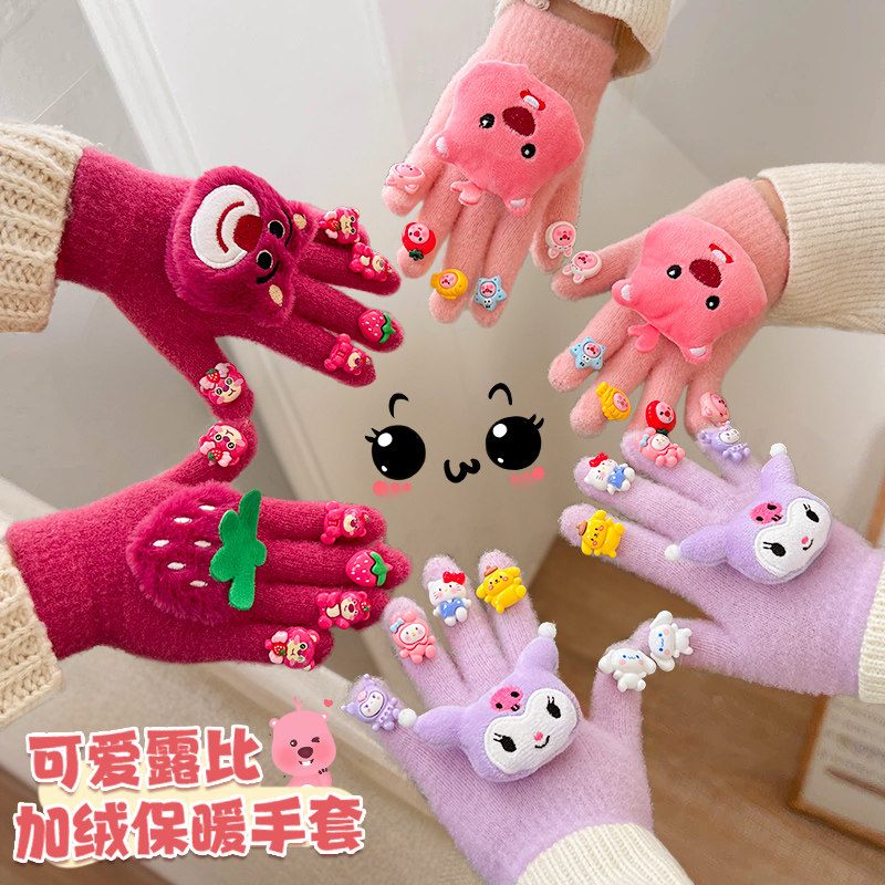 儿童手套冬季女童库洛米五指套冬天女孩加厚绒宝宝保暖防寒分指套