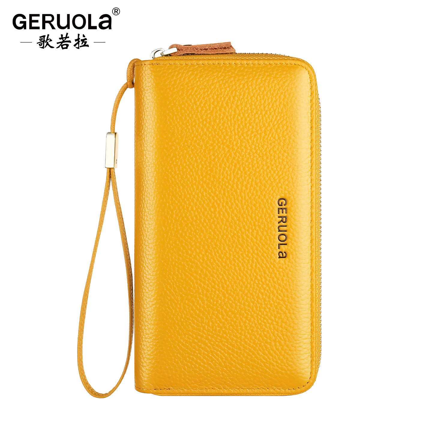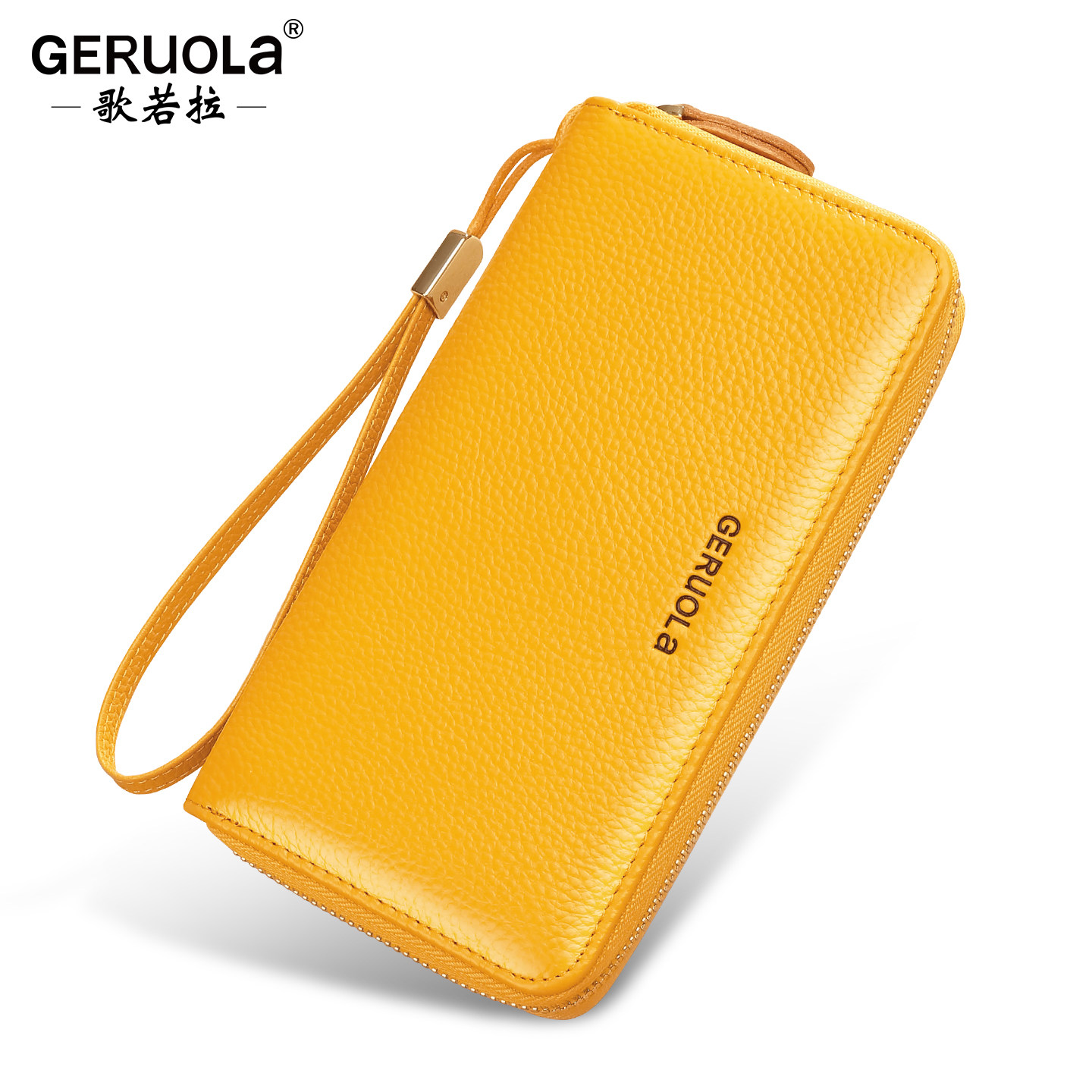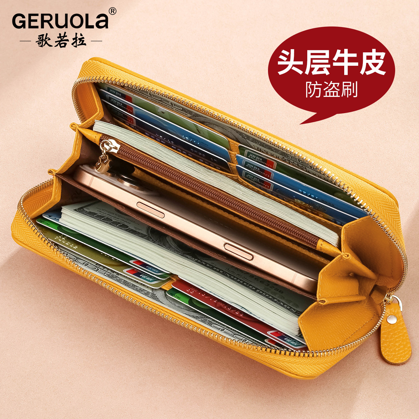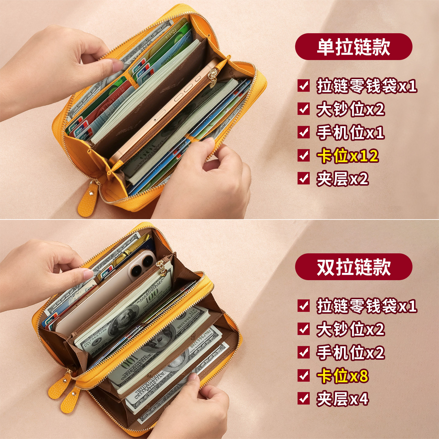 头层牛皮真皮黄色招财钱包女长款2025新款拉链手拿包卡包皮夹折叠