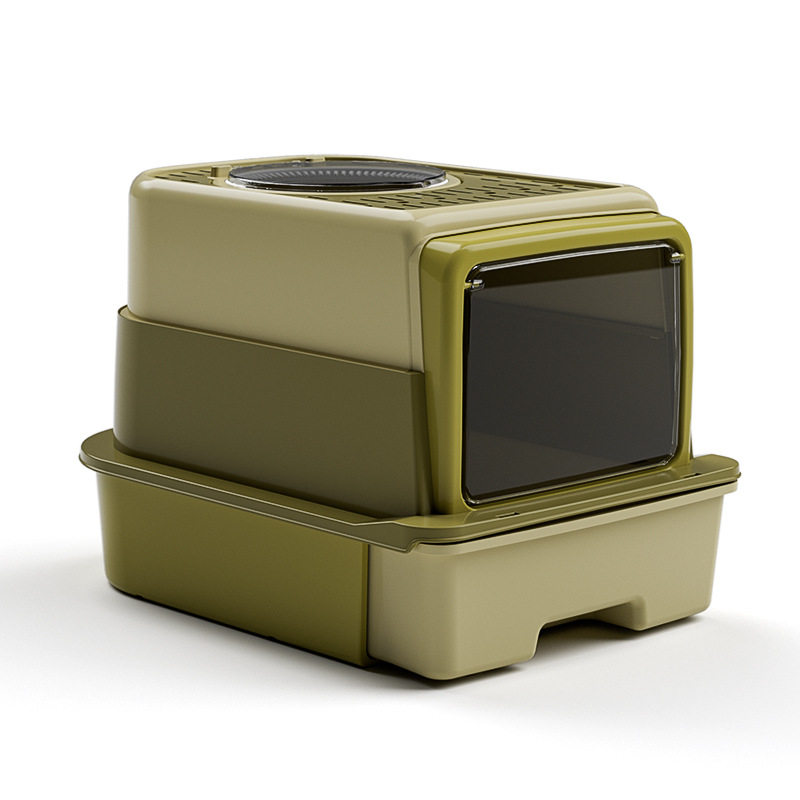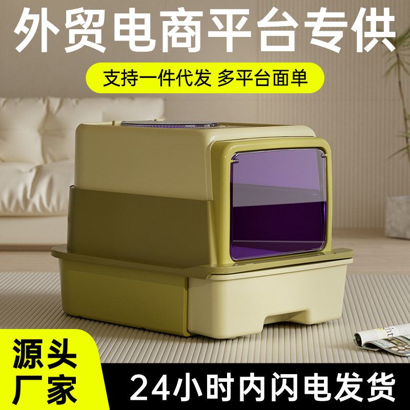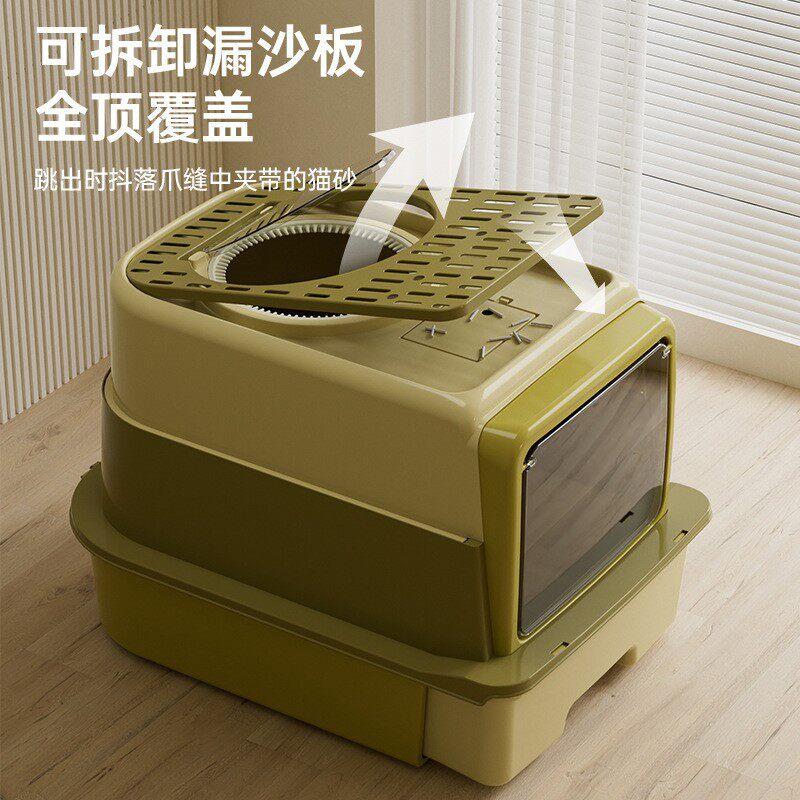 青古橄榄三层式猫砂盆猫厕所防外溅抽屉式超大号UV-C杀菌厂家代发