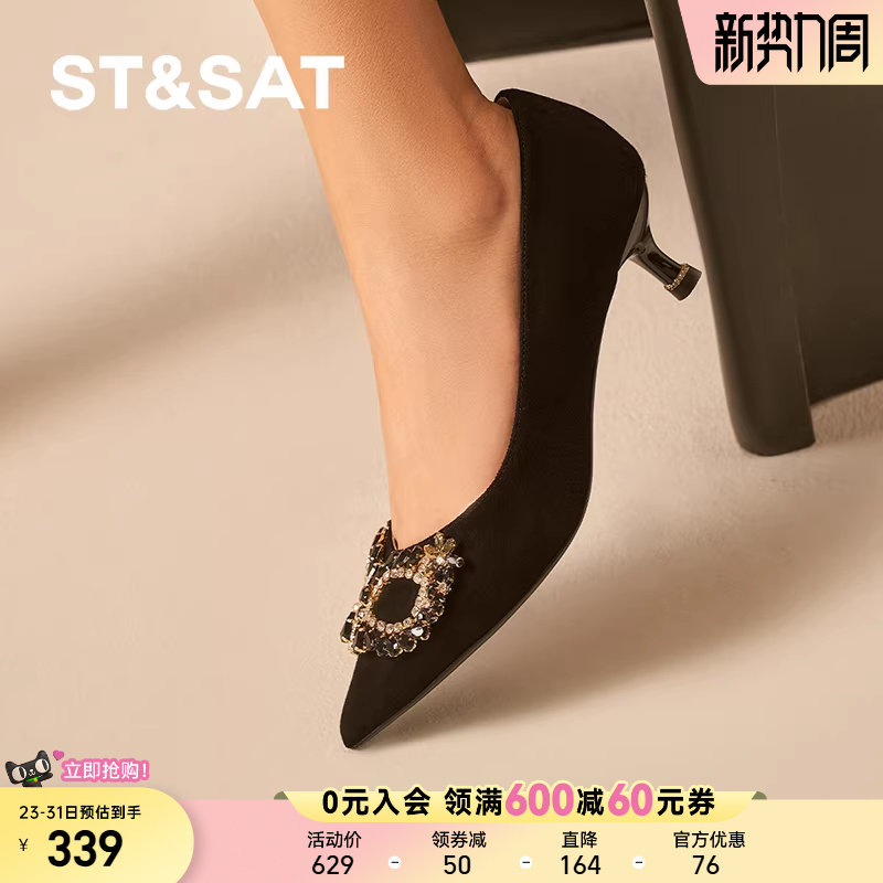 星期六假面系列浅口单鞋2025新款绒面羊皮革细跟黑色性感女高跟鞋