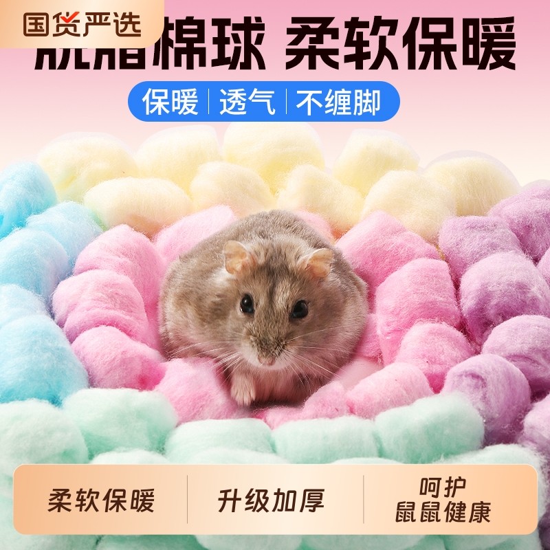 仓鼠棉球垫料冬天保暖过冬季脱脂棉花花枝鼠金丝熊纸棉专用小睡窝