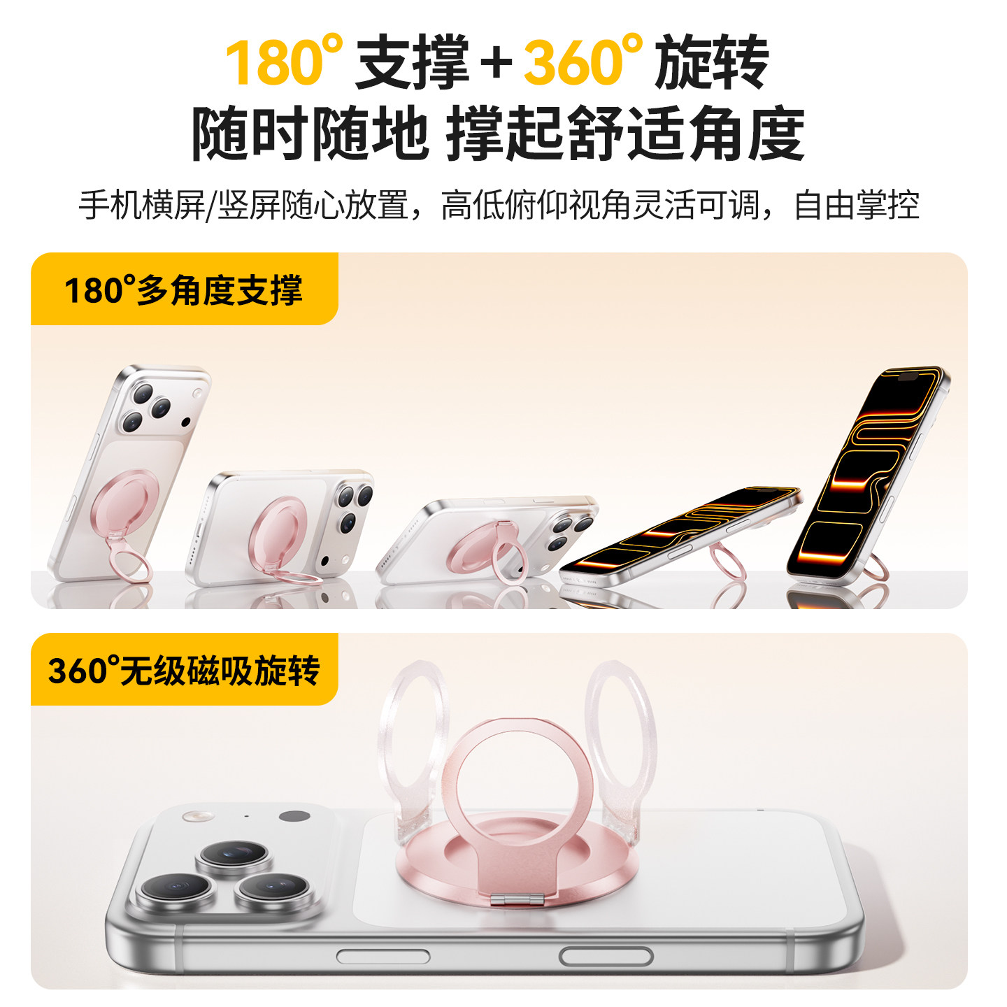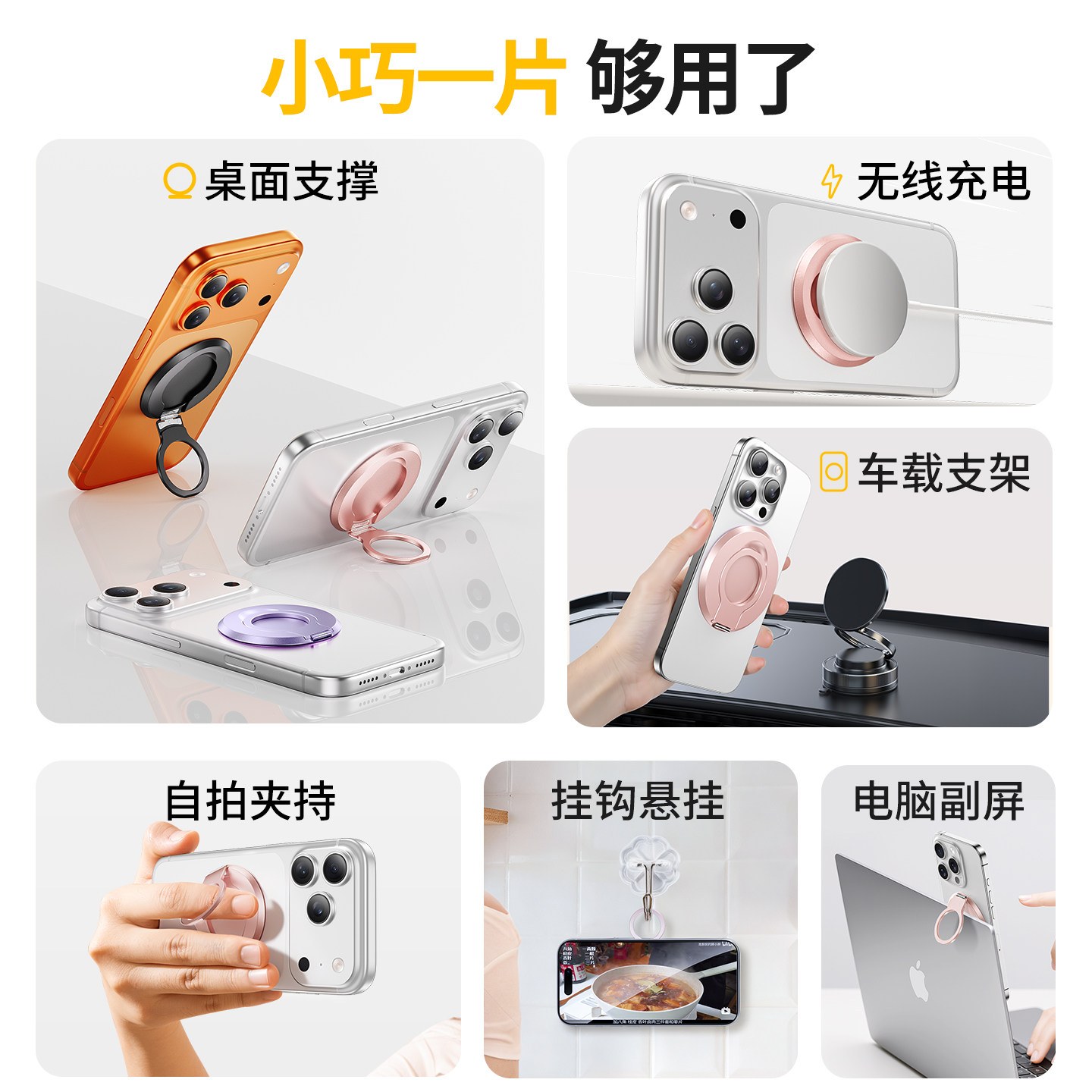 2025新款Magsafe双面磁吸手机支架指环扣背贴360度旋转支撑架铝合金超薄磁力桌面适用苹果车载架子贴片可折叠