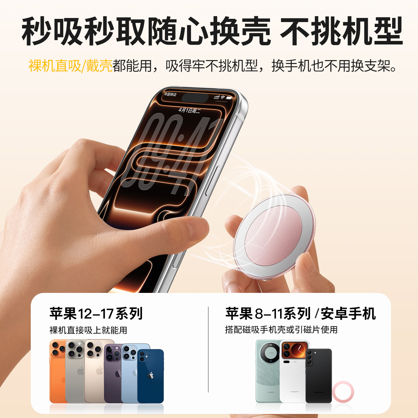 真空吸附磁吸车载手机支架2025新款吸盘车内导航手机架magsafe无线磁吸伸缩折叠便携架子墙壁通用神器