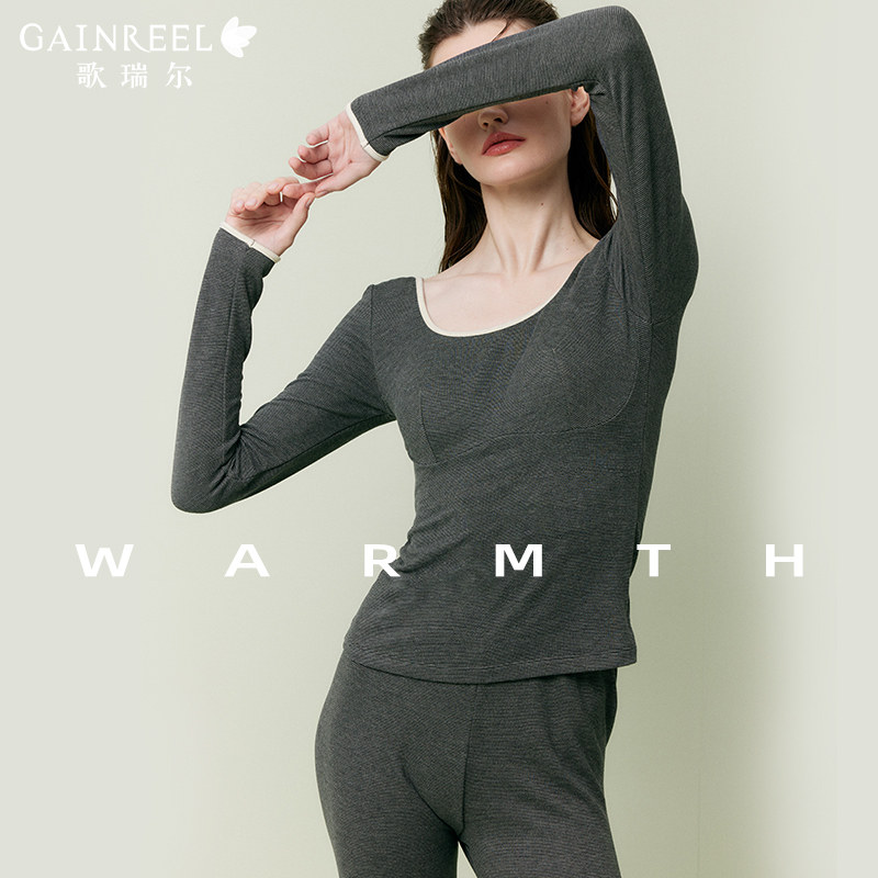 歌瑞尔大方领带胸垫保暖内衣女春季打底衫内搭长袖秋衣秋裤套装