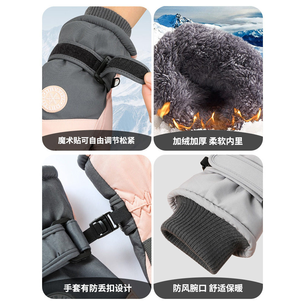 滑雪骑行手套冬季可触屏加绒加厚户外保暖防寒防风防水摩托车手套
