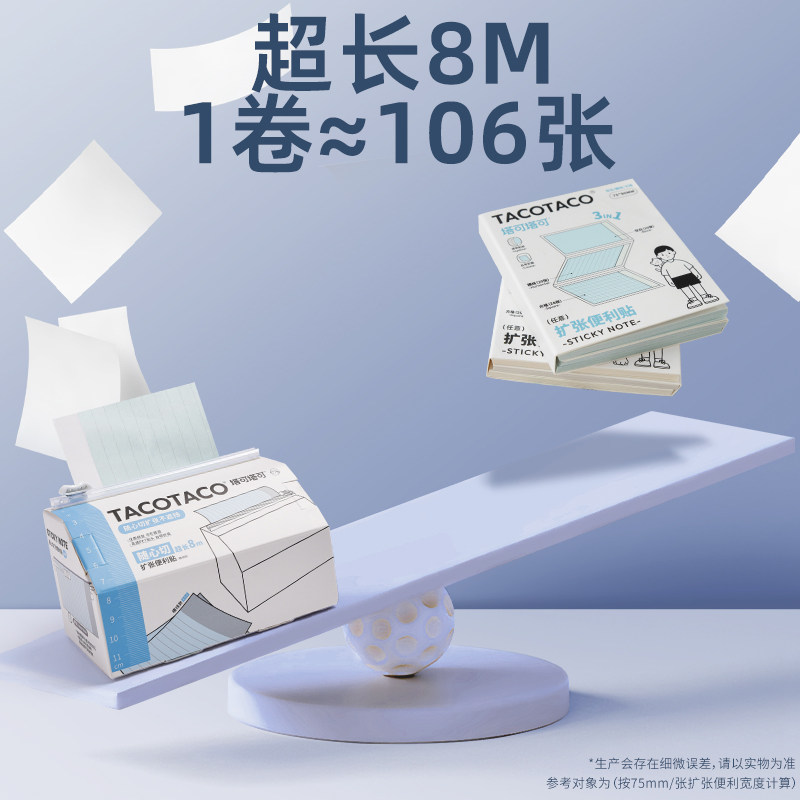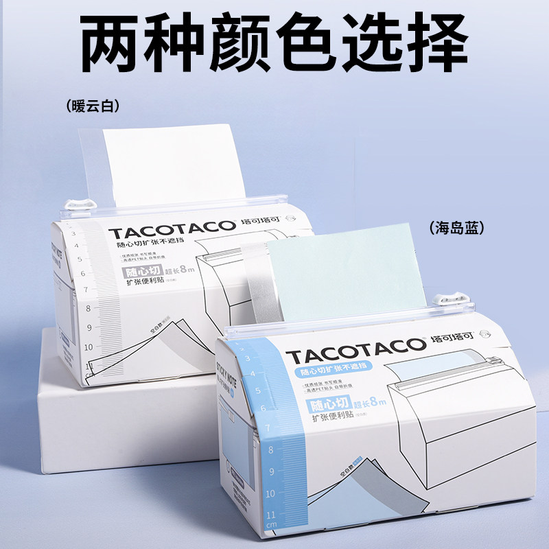 TACOTACO随心切任意贴透明不遮挡扩张便利贴8M初中生专用便签纸高颜值有粘性办公用可撕小学生笔记订正标记贴