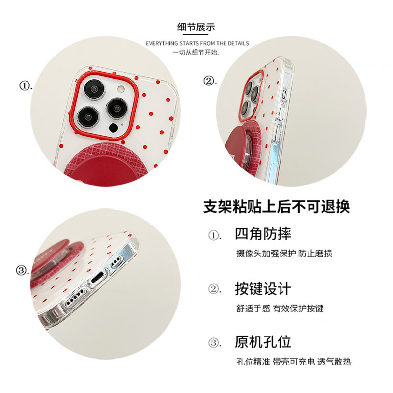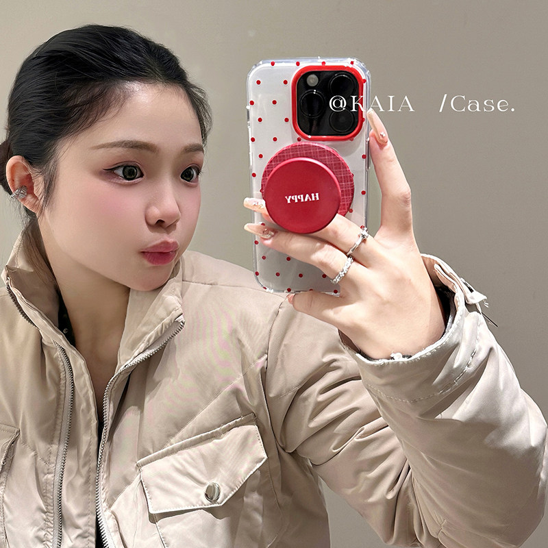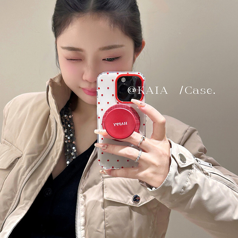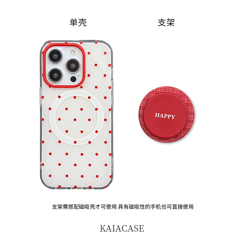 kaia 日韩ins酒红波点适用苹果16promax手机壳iphone13新款15p磁吸支架女14pro简约英文16pro双层防摔手机套