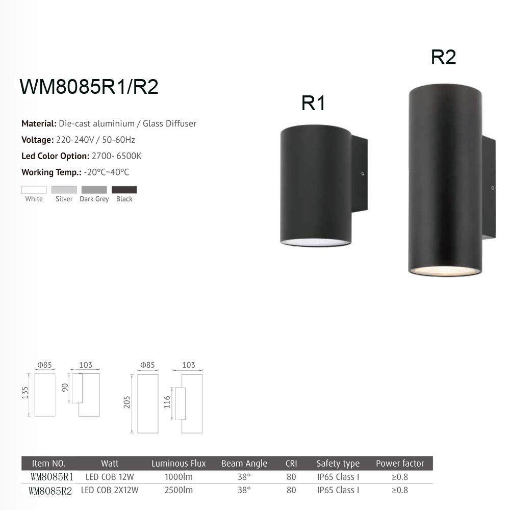户外双头壁灯圆形防水上下发光铝材别墅外墙门口楼梯过道壁灯