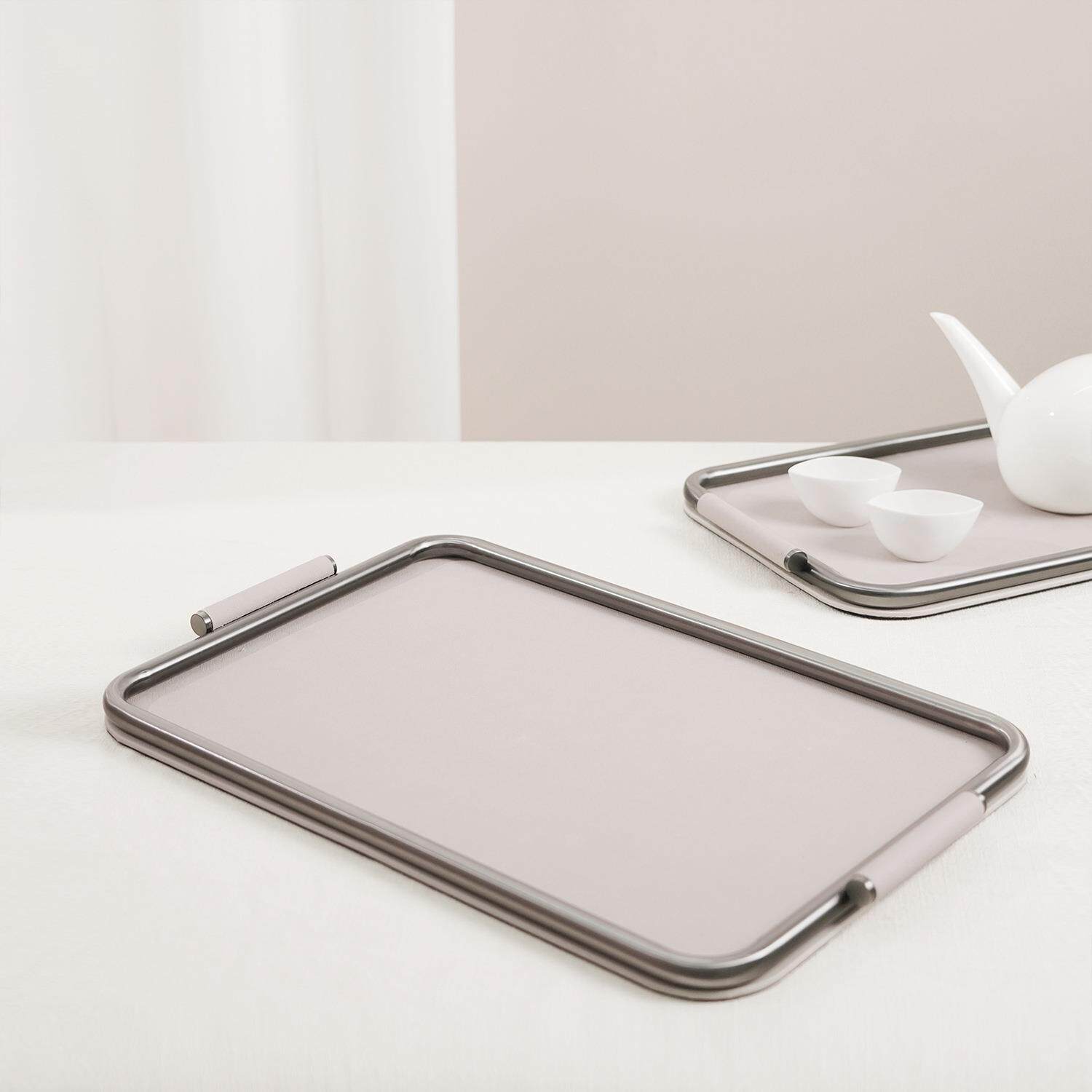 现代简约轻奢米色金属皮质托盘收纳盘样板房客厅桌面软装饰品摆件
