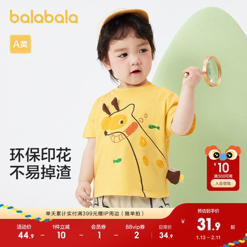 巴拉巴拉童装儿童宝宝t恤婴儿上衣2025春夏装女童男童短袖全棉萌